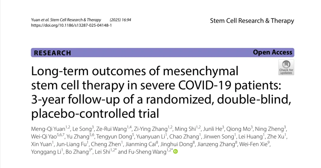 干细胞研究权威期刊首次发表!间充质干细胞治疗重症新冠肺炎三年随访结果公布